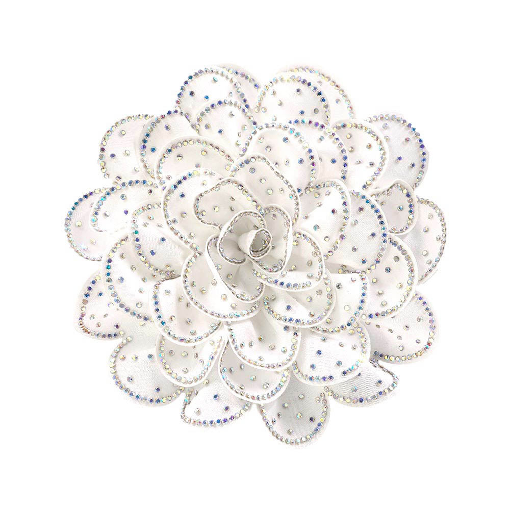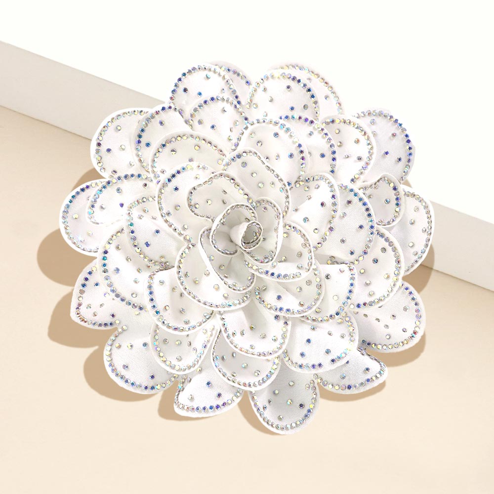 Details • Size : 5.5" X 5.5" • Dual : Brooch / Hair Pinch Clip • Enhance any outfit or hairstyle with this layered floral brooch and hair clip featuring shimmering accents and dimensional petal detail. Designed for versatile styling on scarves, jackets, bags, or hair, it makes a graceful gift or everyday accessory that adds refined sparkle and timeless elegance.
