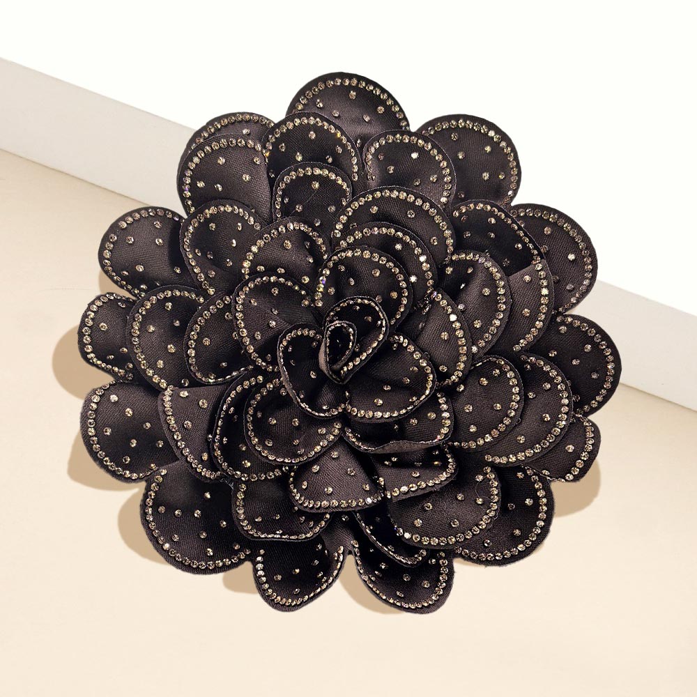 • Enhance any outfit or hairstyle with this layered floral brooch and hair clip featuring shimmering accents and dimensional petal detail. Designed for versatile styling on scarves, jackets, bags, or hair, it makes a graceful gift or everyday accessory that adds refined sparkle and timeless elegance.