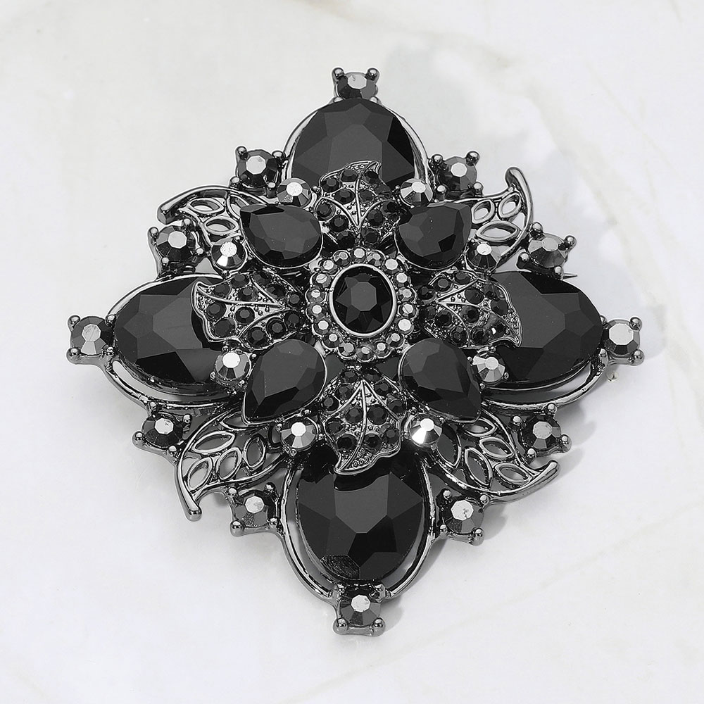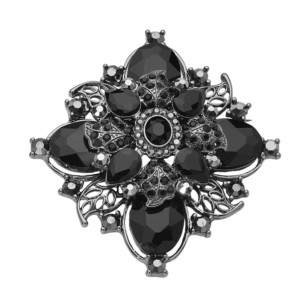 Details • Size : 3.25" X 3.5" • Pin Brooch • Elevate any outfit with this vintage floral crystal brooch designed with layered faceted accents and ornate detailing. Perfect for pinning on jackets, scarves, bags, or dresses, it adds dramatic sparkle and refined style, making it a standout accessory or thoughtful gift for special occasions and everyday elegance. • Lead and Nickel Compliant