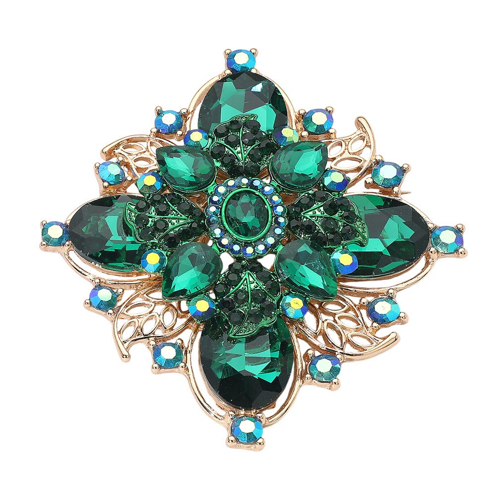Details • Size : 3.25" X 3.5" • Pin Brooch • Elevate any outfit with this vintage floral crystal brooch designed with layered faceted accents and ornate detailing. Perfect for pinning on jackets, scarves, bags, or dresses, it adds dramatic sparkle and refined style, making it a standout accessory or thoughtful gift for special occasions and everyday elegance. • Lead and Nickel Compliant