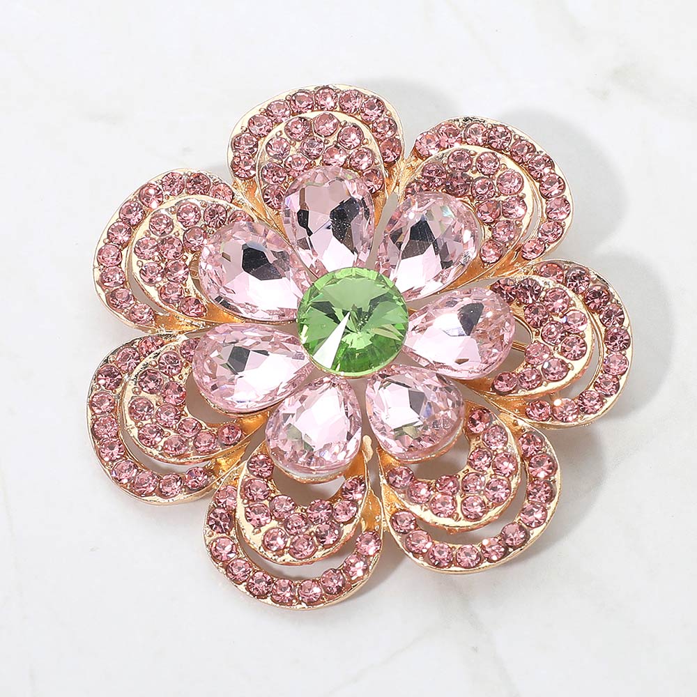 • Elegant floral statement brooch featuring layered petal detailing and sparkling crystal accents for refined, eye-catching appeal. Designed to elevate jackets, dresses, scarves, and handbags, this brooch adds timeless sophistication and decorative charm to everyday styling, special occasions, and boutique accessory collections.