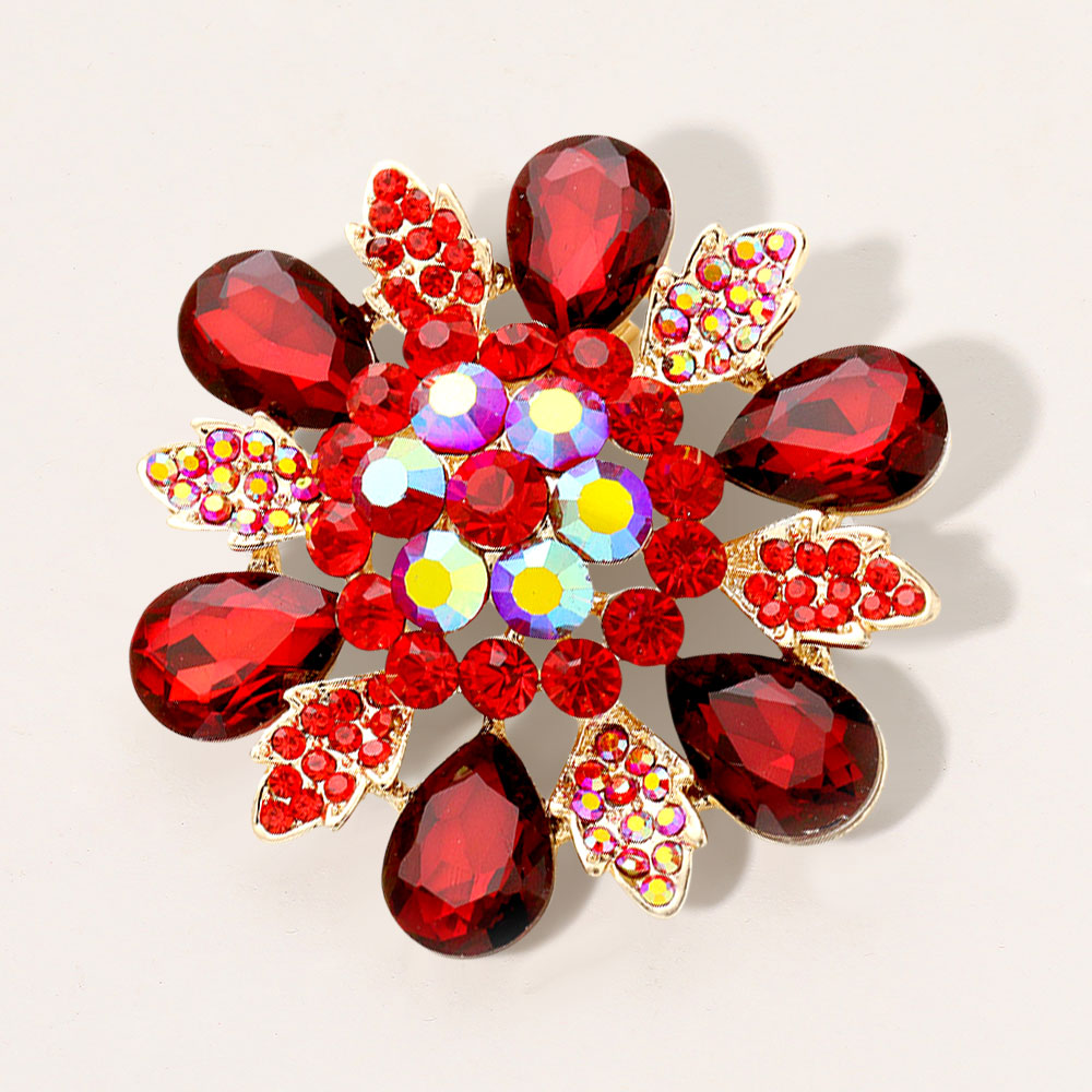 Floral Glass Stone Pin Brooch Floral Glass Stone Pin Brooch Floral Glass Stone Pin Brooch