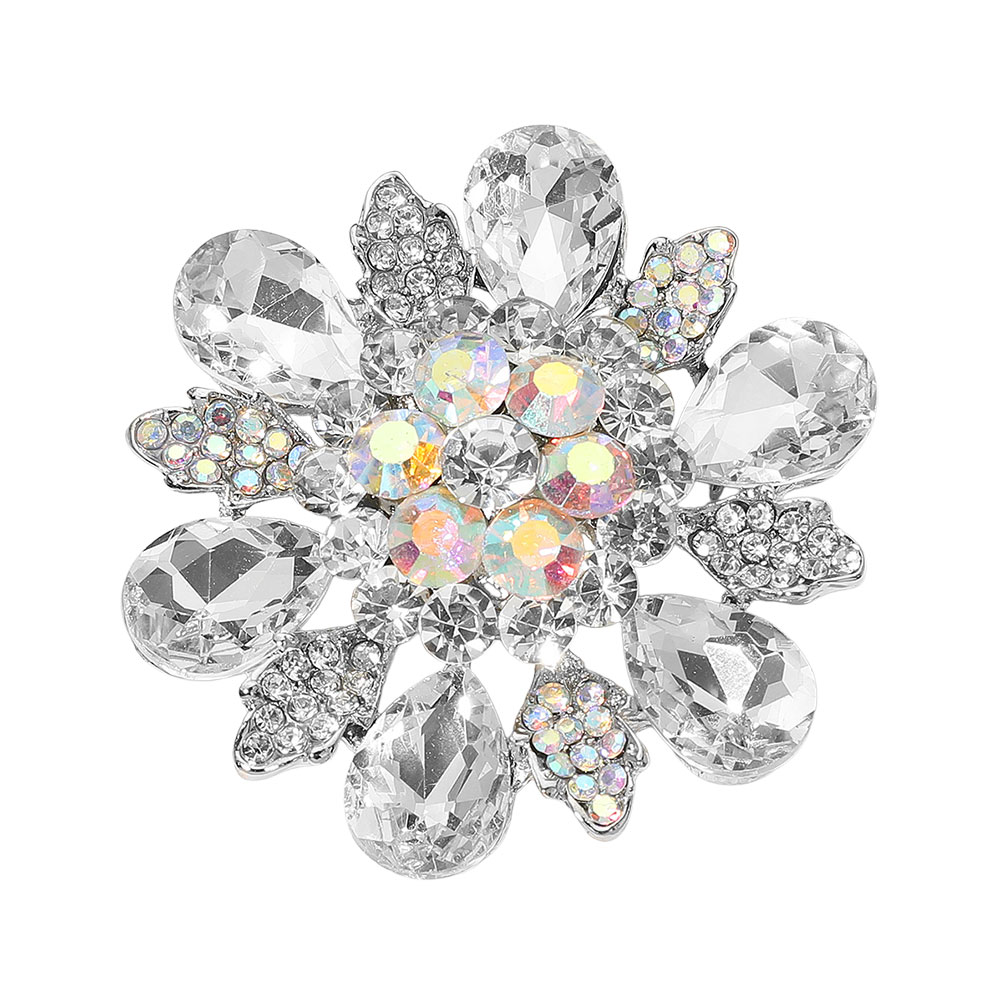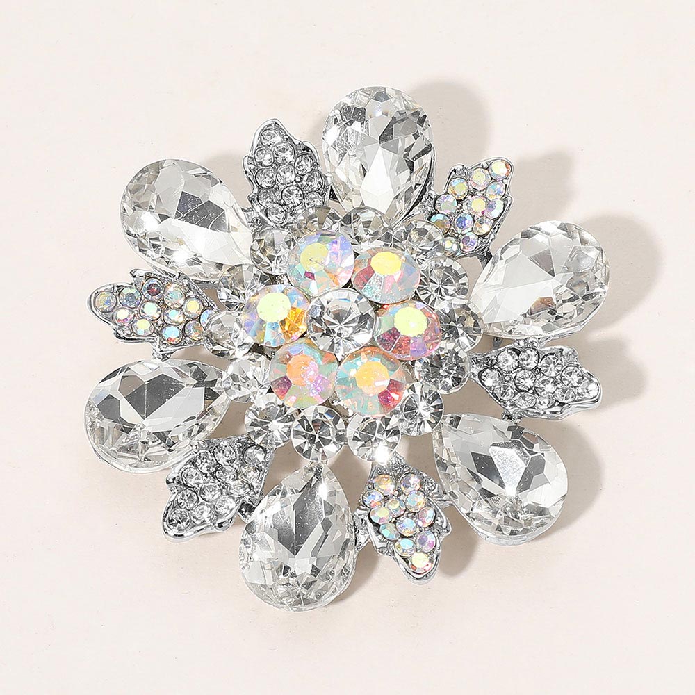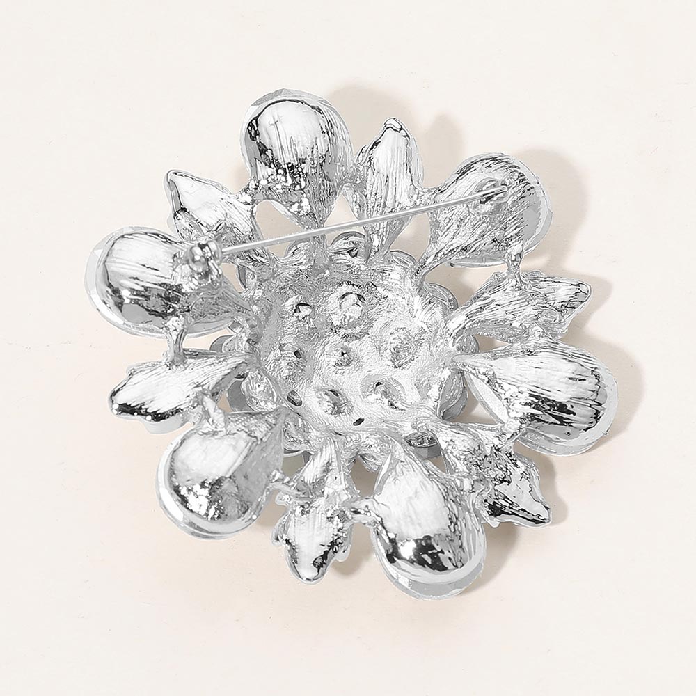 Details • Size : 2.5" x 2.5" • Pin Brooch • This elegant crystal flower brooch adds a radiant touch to any outfit with its beautifully arranged sparkling stones and refined floral silhouette. Perfect for elevating everyday looks or enhancing formal attire, it offers timeless charm and eye-catching brilliance. • Lead and Nickel Compliant