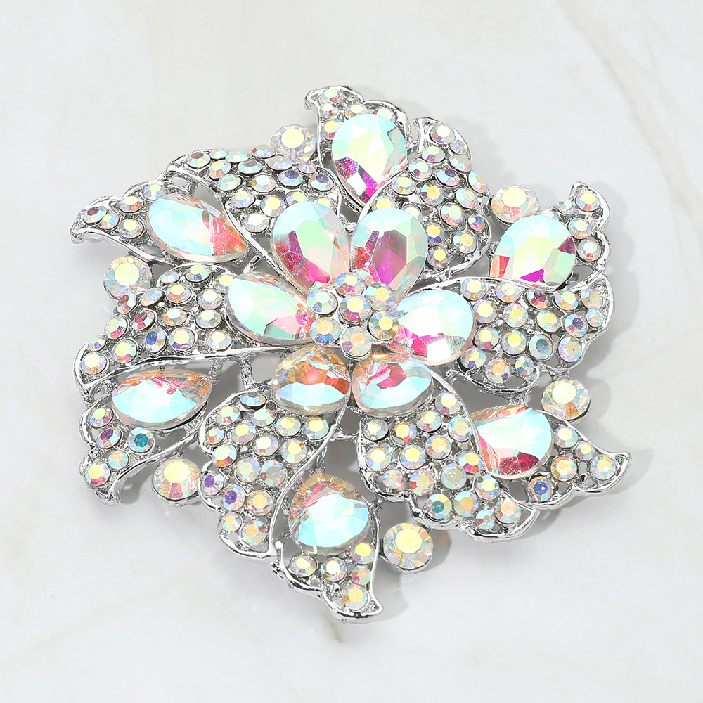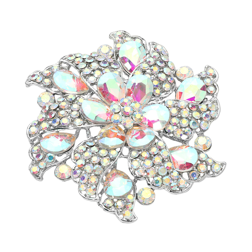 • Elegant floral brooch featuring dazzling gemstone accents arranged in a radiant petal design. Perfect for adding a touch of glamour to jackets, dresses, or scarves, this statement accessory enhances any outfit with a refined and eye-catching sparkle.