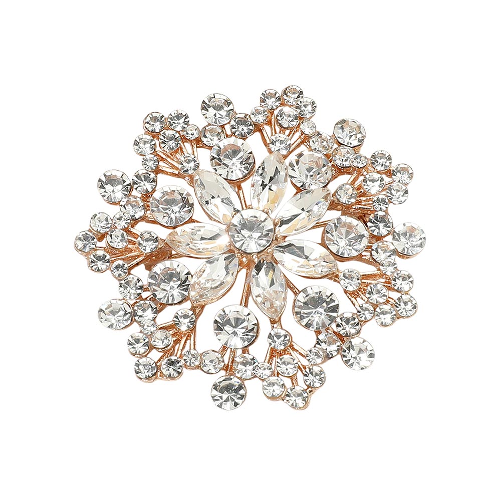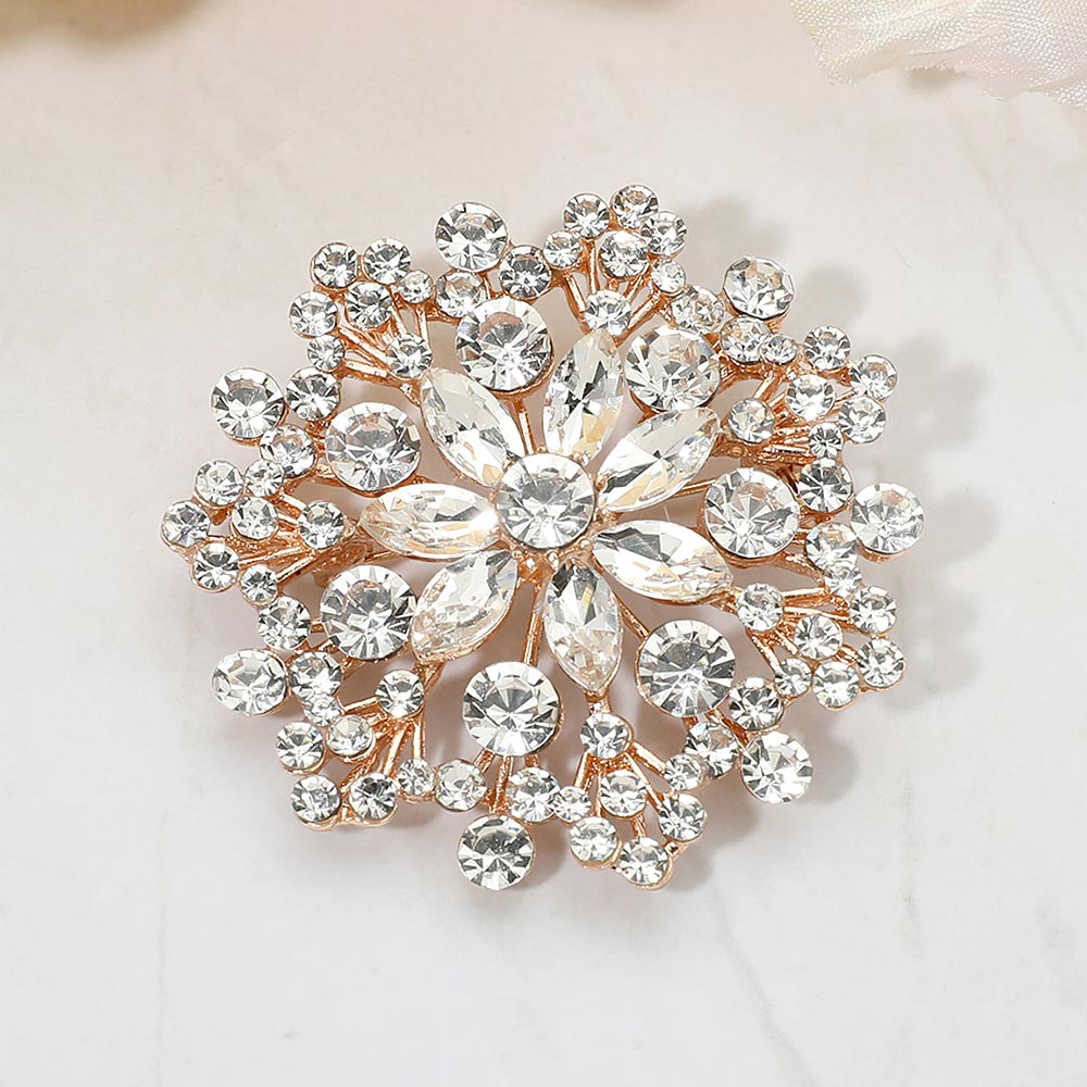 • Eye-catching floral statement brooch designed with layered crystal accents arranged in a radiant cluster silhouette. This decorative pin adds elegant sparkle and dimension to jackets, scarves, dresses, and accessories, making it ideal for formal styling, seasonal collections, and fashion-forward displays.