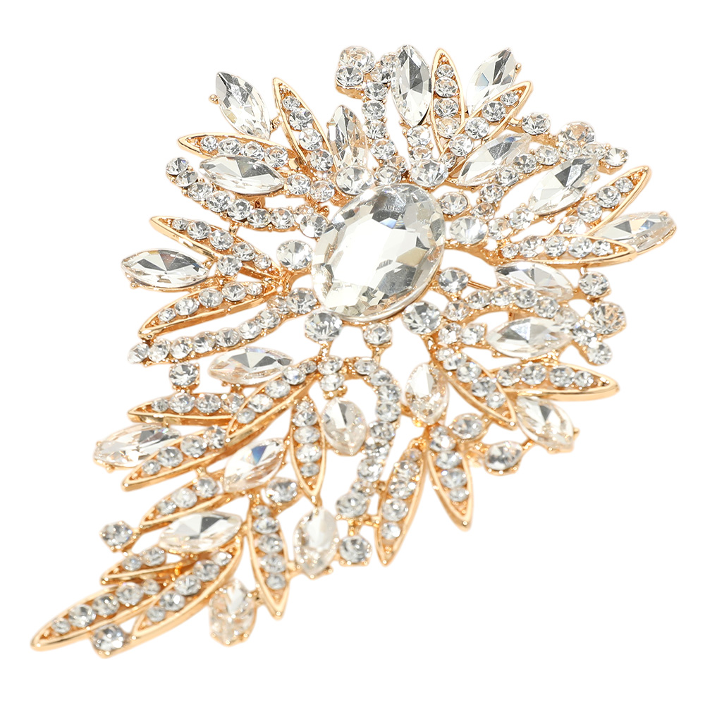 Details • Size : 3.5" X 5.5" • Pin Brooch • Elevate special outfits with this statement floral crystal brooch featuring a striking arrangement of faceted stones in an ornate design. Perfect for evening wear, accessories, or gifting, it adds eye-catching sparkle and refined detail to jackets, shawls, bags, and dresses for standout style. • Lead and Nickel Compliant