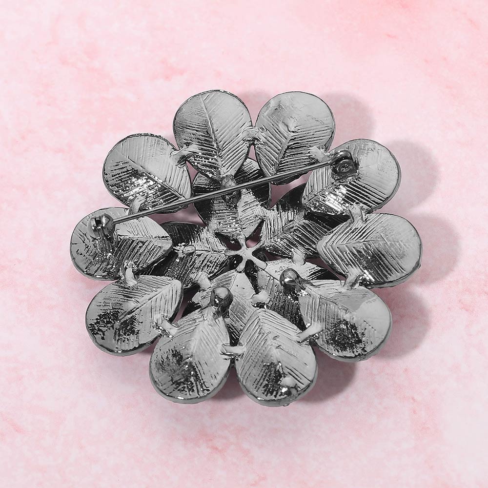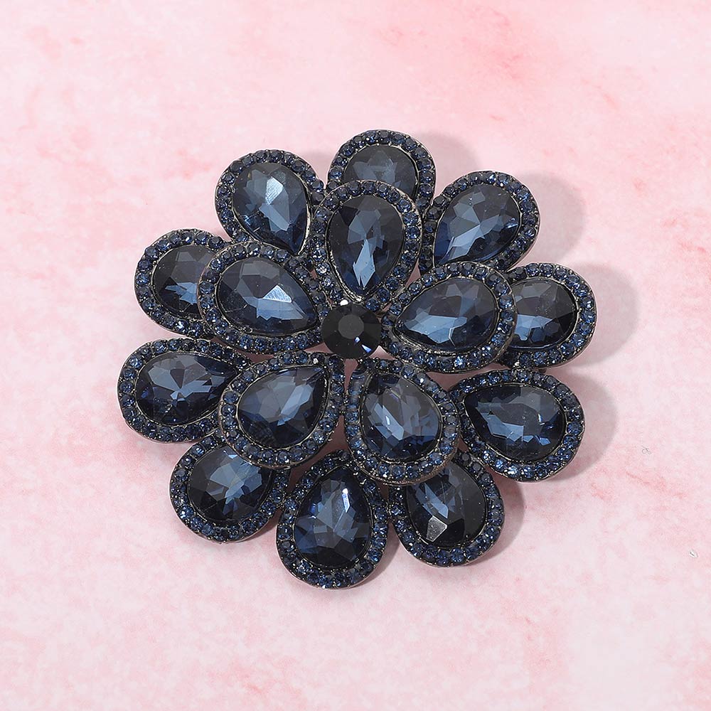 Details • Size : 2.6" X 2.6" • Pin Brooch • Eye-catching floral brooch designed with layered teardrop-shaped crystal accents forming a radiant flower silhouette. A bold statement piece ideal for jackets, dresses, scarves, and special occasion styling, perfect for gifting or elegant everyday looks. • Lead and Nickel Compliant