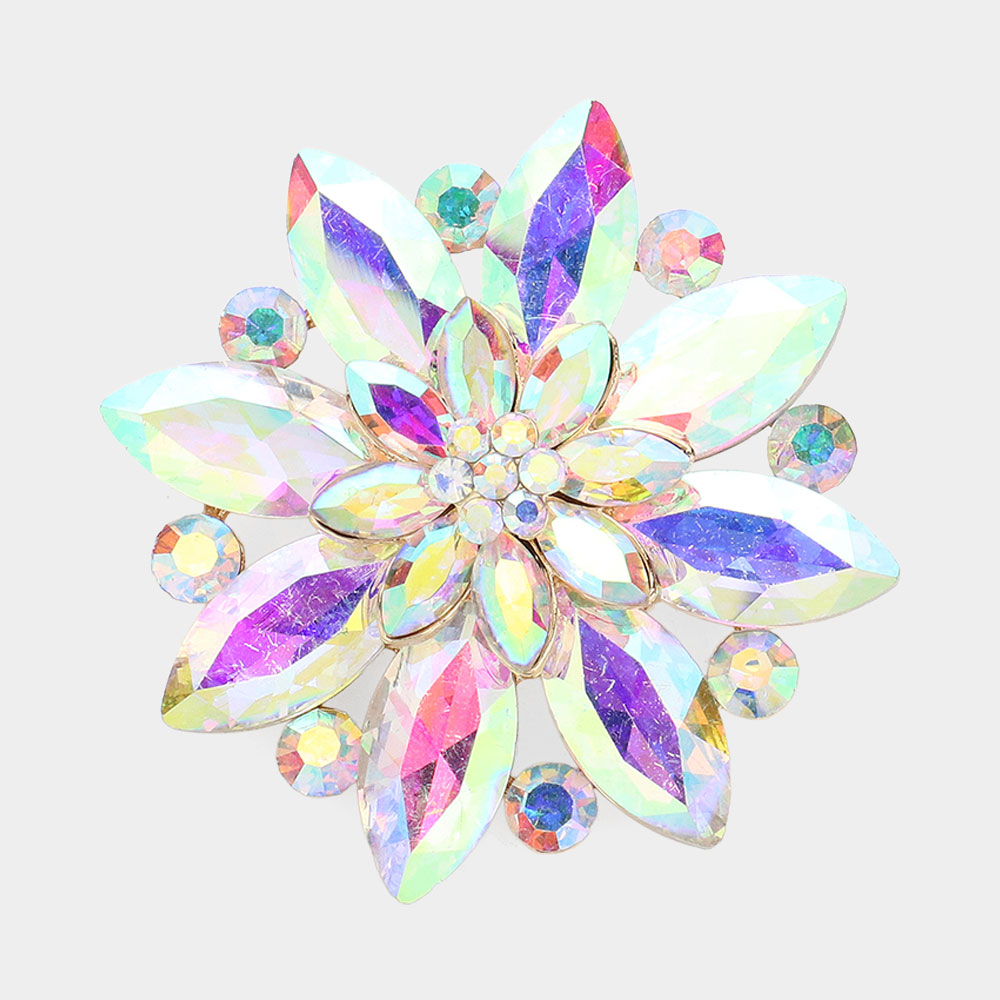 • Stunning floral rhinestone brooch featuring layered petals and crystal accents. Ideal for enhancing jackets, shawls, or formal attire with a touch of charm and sparkle.