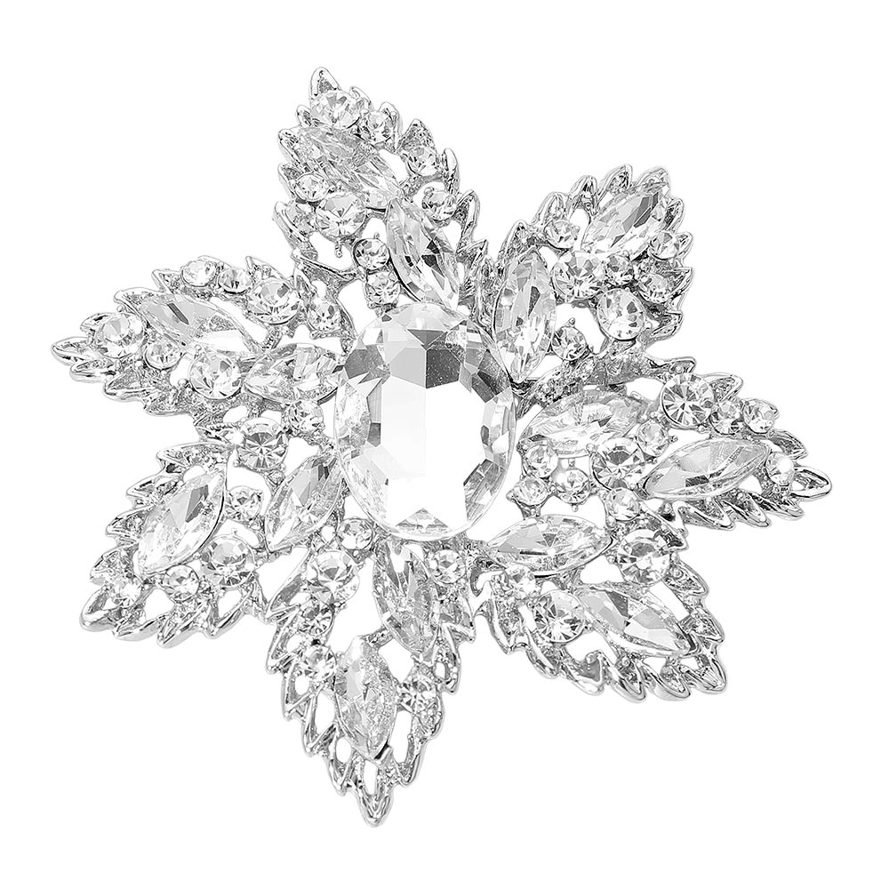 • This ornate floral brooch features an intricately layered design with a bold faceted centerpiece surrounded by shimmering accents. Its radiant, sculpted silhouette adds a refined touch to formalwear, evening outfits, or special-occasion ensembles, creating a timeless statement full of sophistication.