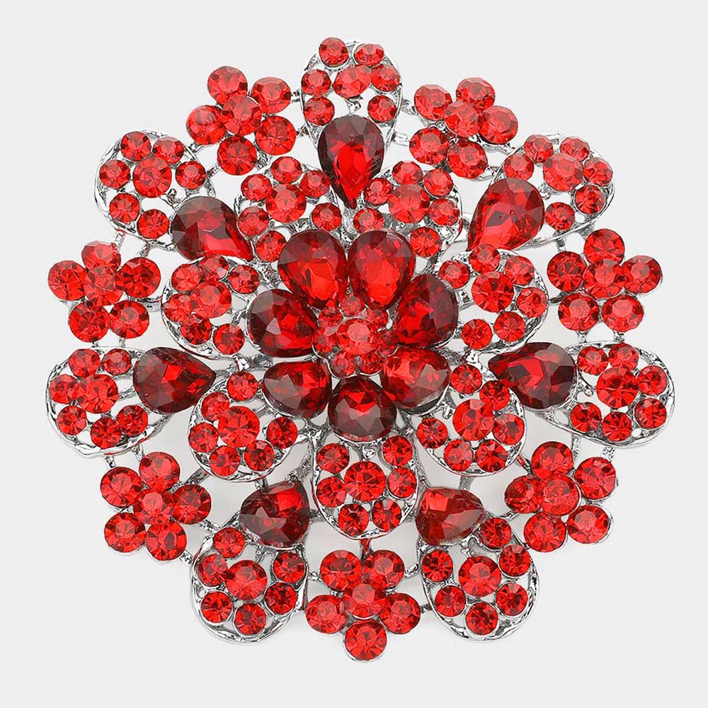 • Brilliant flower brooch adorned with iridescent crystals in layered petal design. A dazzling statement piece for dresses, scarves, or jackets, adding glamour and elegance to weddings, parties, or special occasions.