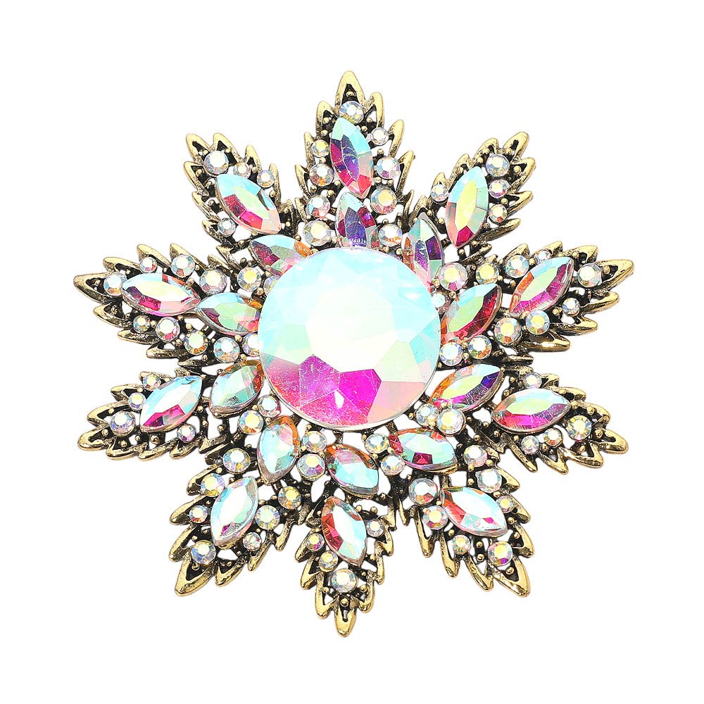 Details • Size : 3.3" X 3.5" • Pin Brooch • Make a statement with this crystal floral starburst brooch, featuring a radiant layered design and a brilliant center stone that catches the light beautifully. A versatile accessory for elevating jackets, scarves, handbags, or special occasion looks. • Lead and Nickel Compliant