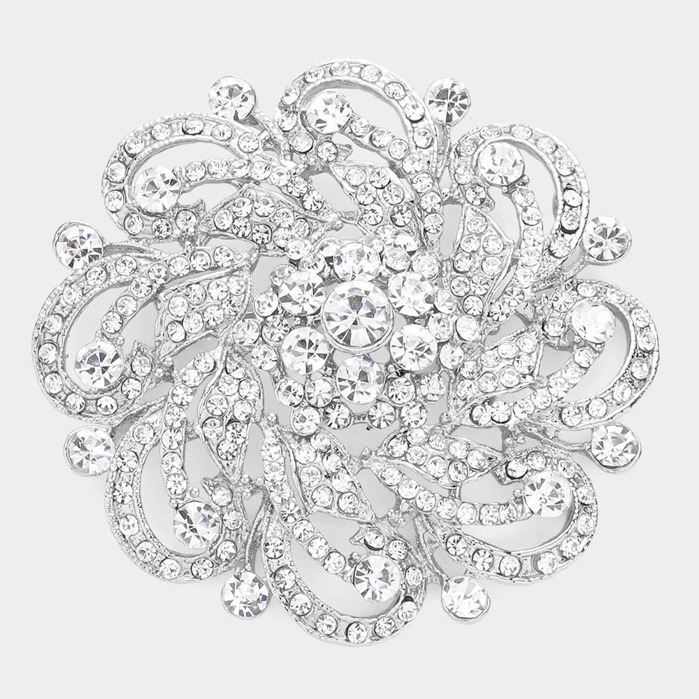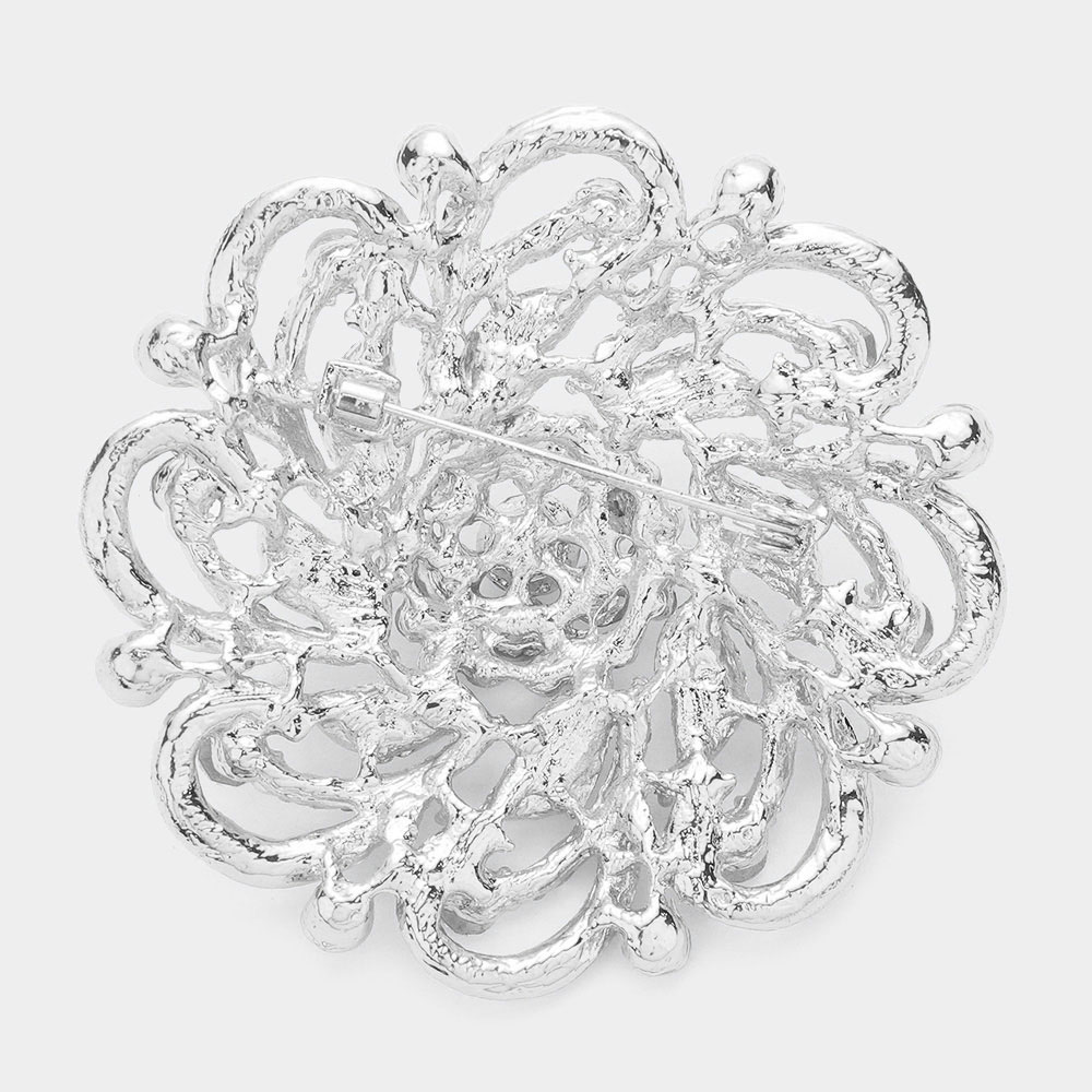 Rhinestone Embellished Flower Pin Brooch
