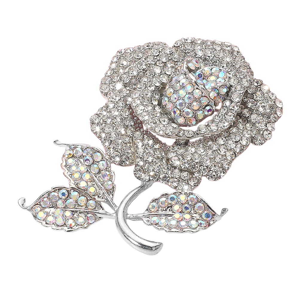 • Add a touch of romance and sparkle with this crystal rose brooch, beautifully designed with shimmering stones for a radiant look. Perfect as a statement accessory on jackets, dresses, scarves, or handbags, this floral pin is ideal for weddings, special occasions, or as a thoughtful gift for someone special.