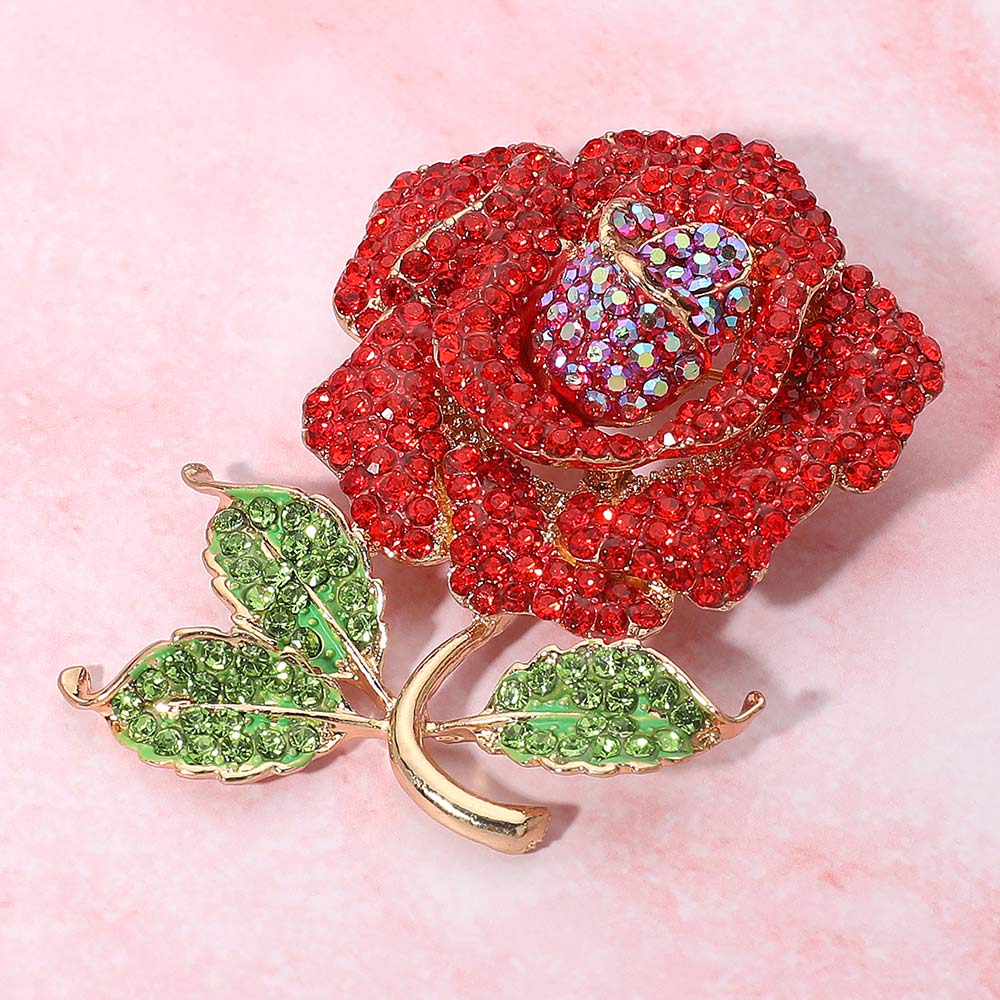 • Add a touch of romance and sparkle with this crystal rose brooch, beautifully designed with shimmering stones for a radiant look. Perfect as a statement accessory on jackets, dresses, scarves, or handbags, this floral pin is ideal for weddings, special occasions, or as a thoughtful gift for someone special.