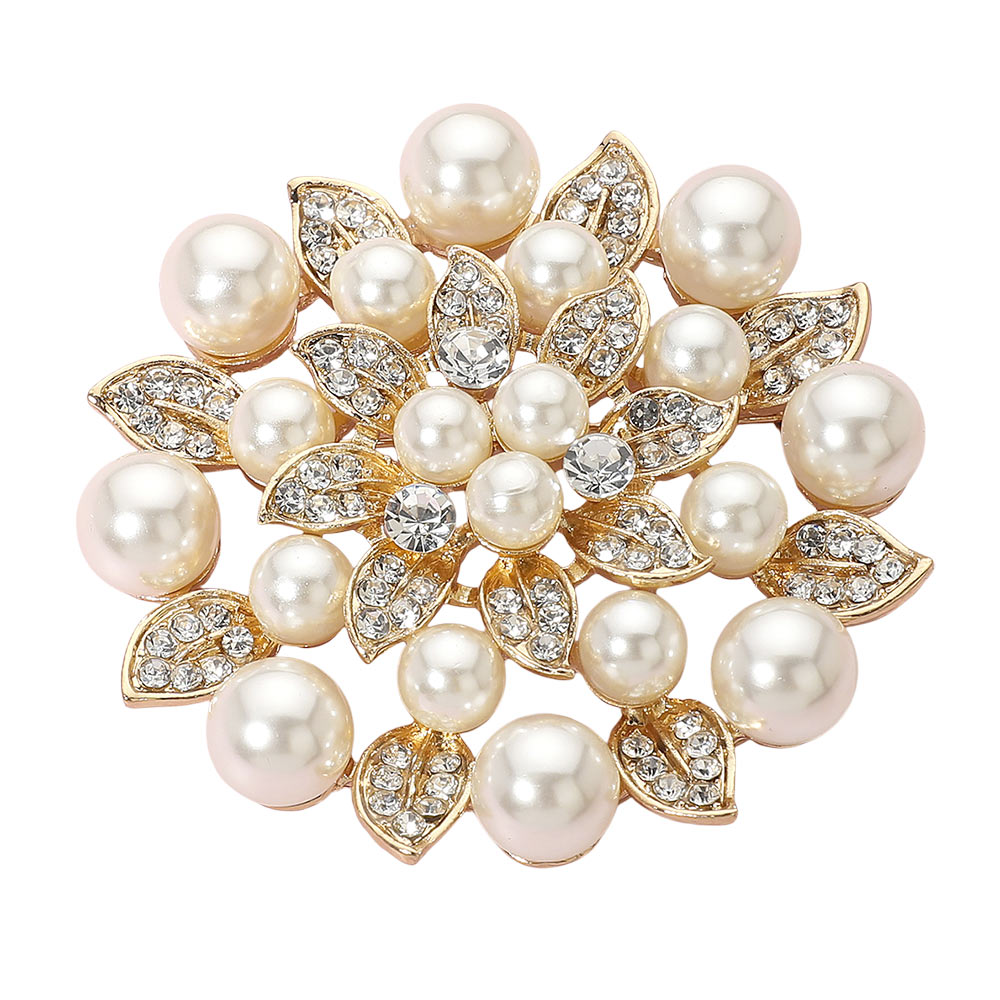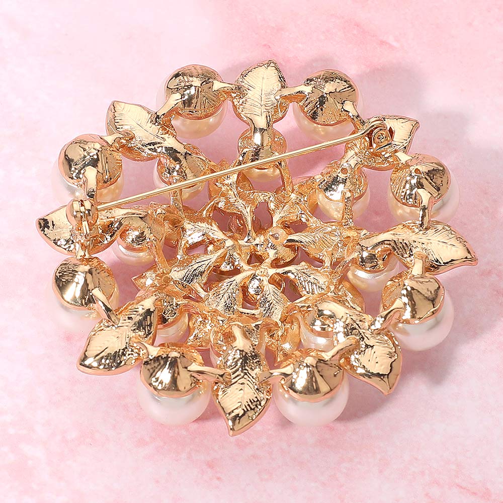 Rhinestone Pearl Embellished Elegant Floral Pin Brooch