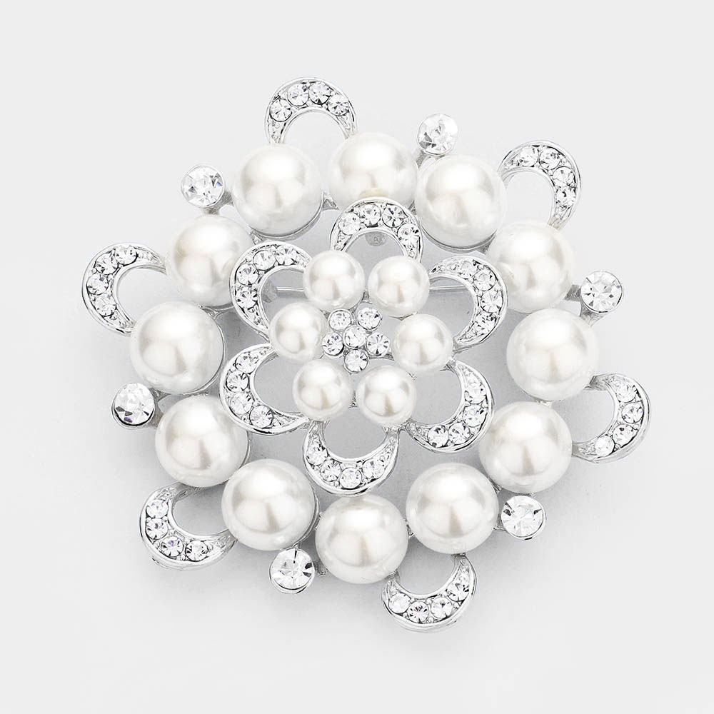 Round Crystal Pearl Flower Pin Brooch