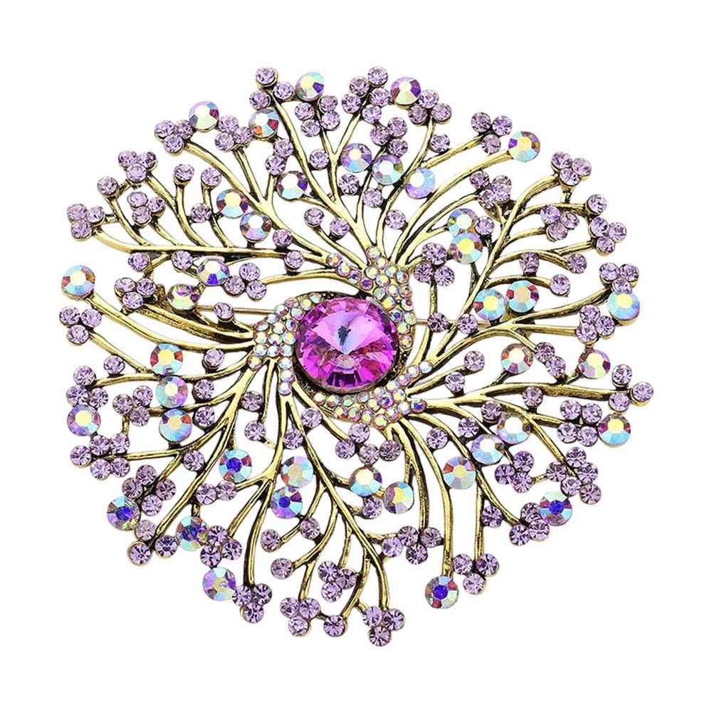 Round Stone Centered Rhinestone Embellished Branch Flower Pin Brooch Round Stone Centered Rhinestone Embellished Branch Flower Pin Brooch Round Stone Centered Rhinestone Embellished Branch Flower Pin Brooch