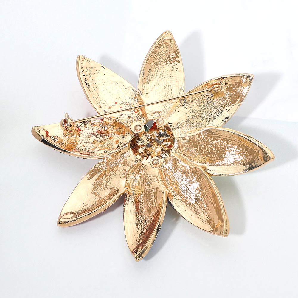 • Elegant floral brooch adorned with shimmering crystals arranged in a petal design. Perfect for adding a luxurious touch to coats, dresses, or scarves, this eye-catching accessory brings timeless glamour to any outfit.