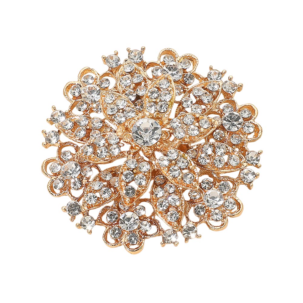 • Bring a touch of brilliance to formal outfits with this vintage-inspired floral brooch, featuring shimmering crystals arranged in an ornate design. Ideal for weddings, evening attire, and special occasions, it adds elegant sparkle and a sophisticated accent to dresses, shawls, and outerwear.