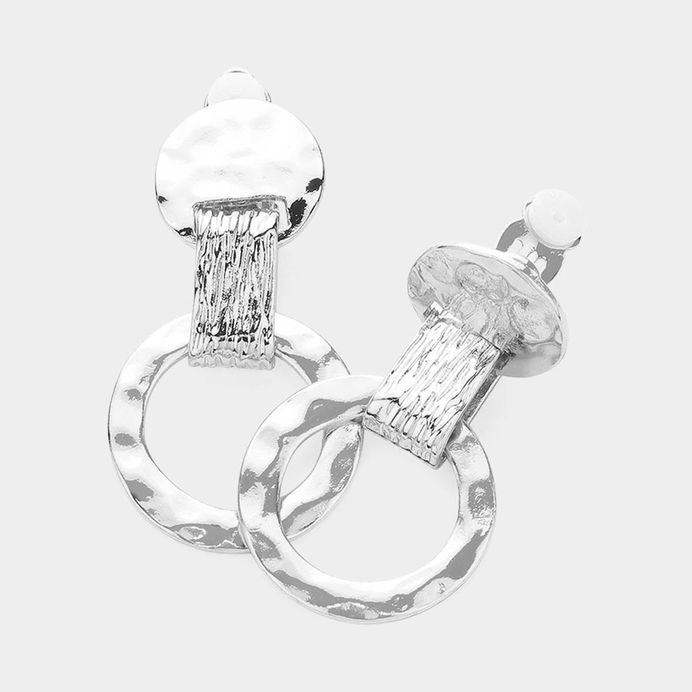 Abstract Hammered Metal Doorknocker Clip On Earrings