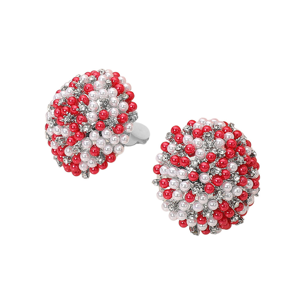 Beaded Pearl Rhinestone Embellished Dome Clip On Earrings Beaded Pearl Rhinestone Embellished Dome Clip On Earrings