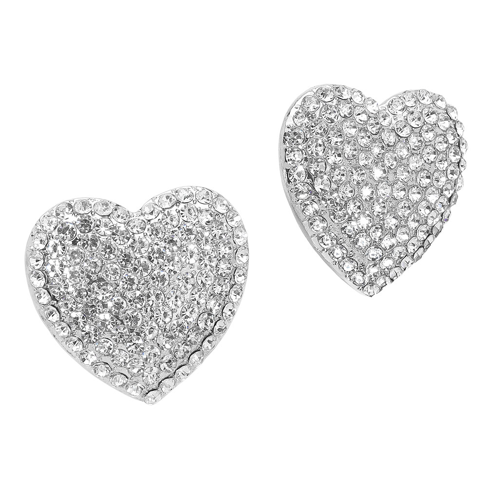 • Classic heart shaped clip on earrings designed with a pavĂ© style surface for a refined yet playful look. Ideal for everyday wear, gifting, or seasonal merchandising, these versatile studs pair easily with casual or dressy outfits and are a popular choice for boutiques and accessory collections.