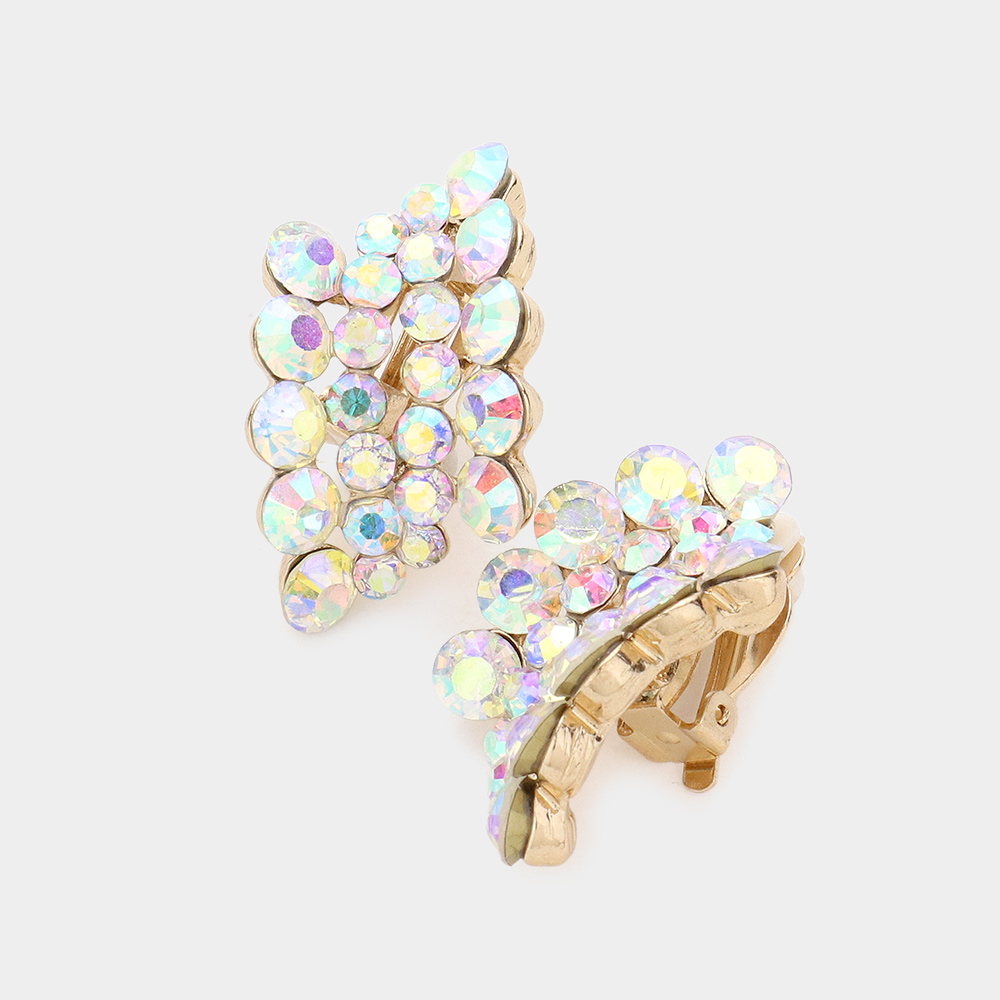 Glass Stone Cluster Embellished Drop Dangle Evening Earrings