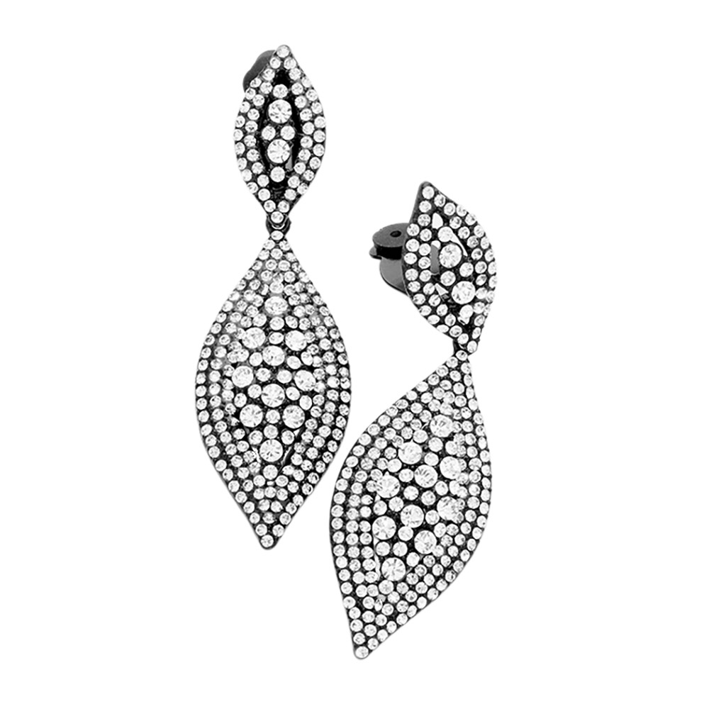 • These leaf-shaped drop clip earrings bring refined sparkle to any look with their intricate pavĂ© detailing and elongated silhouette. Designed for effortless elegance, they offer a radiant finish that enhances both special-occasion and everyday styling with graceful brilliance.