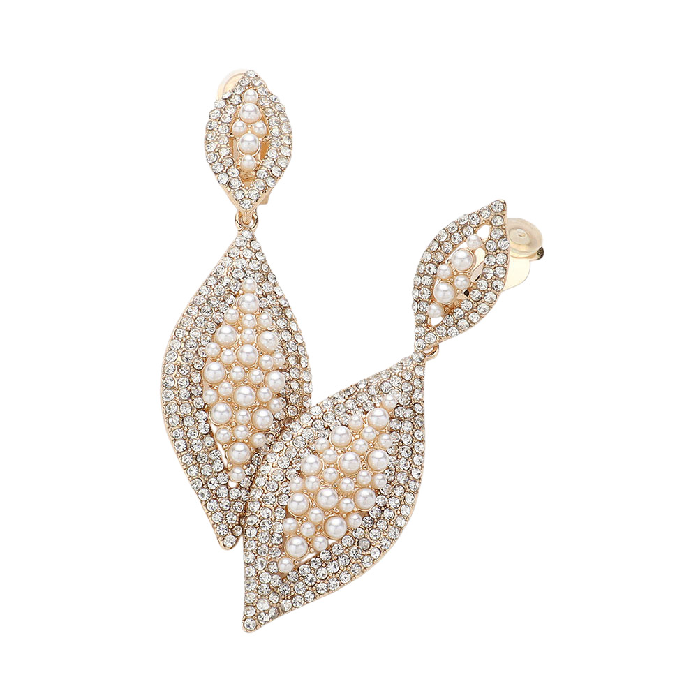 Marquise Rhinestone Pearl Embellished Clip on Earrings