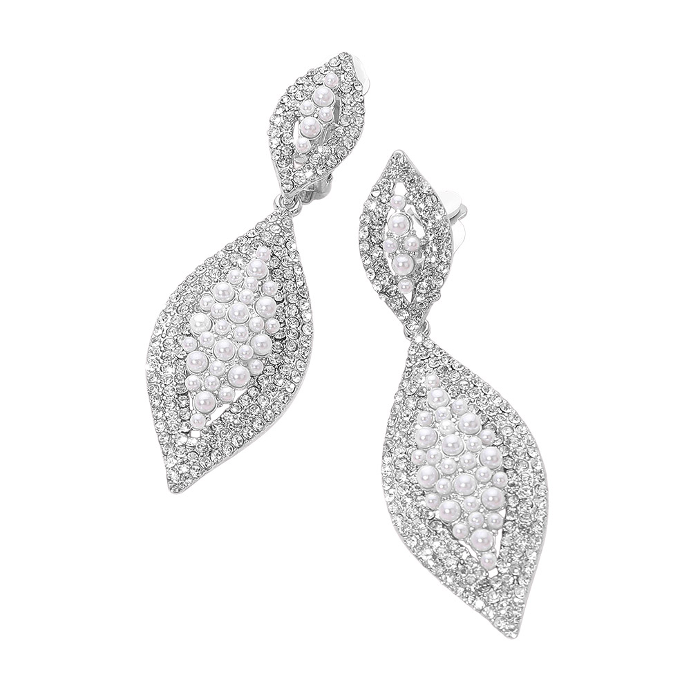 Marquise Rhinestone Pearl Embellished Clip on Earrings