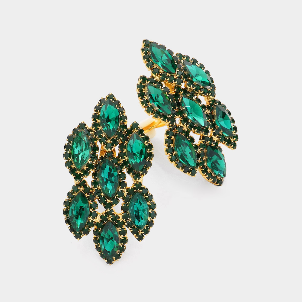 CZ Oval Stone Pointed Marquise Round Stone Trimmed Clip On Earrings