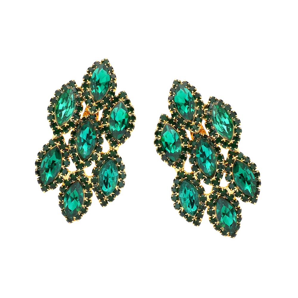Elegant Floral Stone Cluster Long Drop Evening Earrings