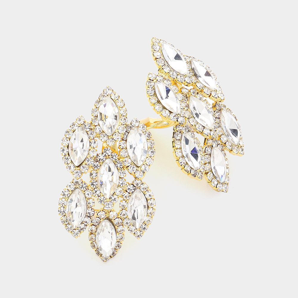 Stone Paved Pointed Metal Bamboo Stretch Bracelet