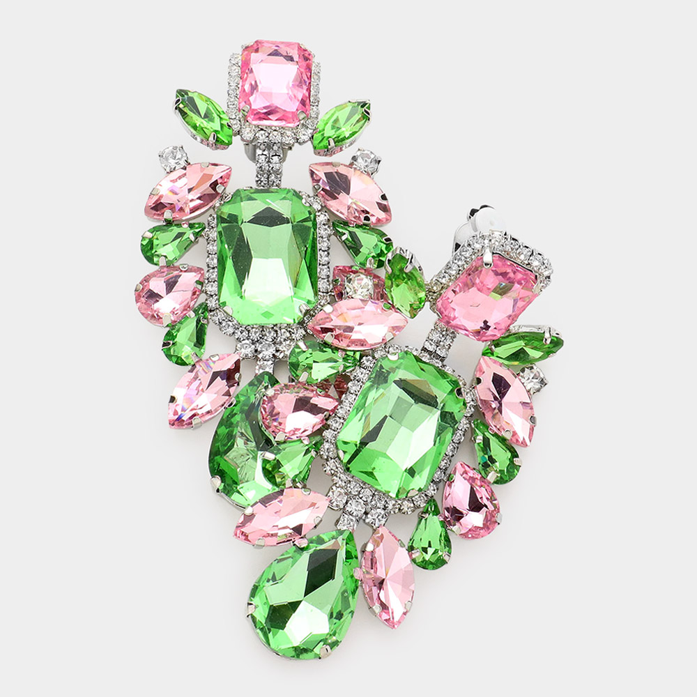 Oversized Teardrop Glass Stone Pendant Bling Studded Chunky Chain Necklace
