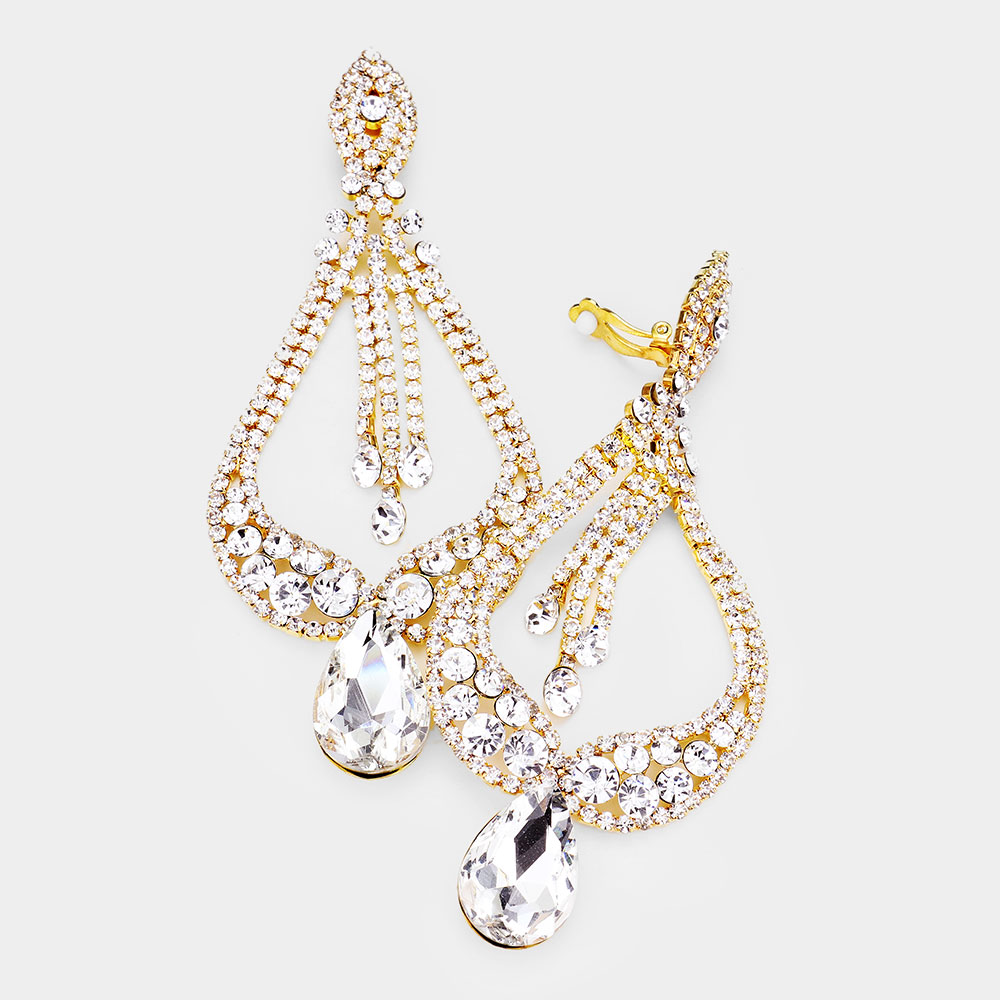 Oversized Pave Glass Teardrop Chandelier Evening Earrings