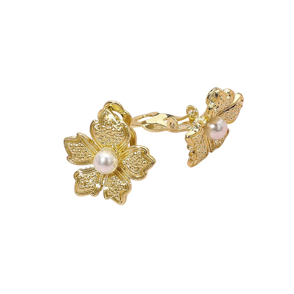 Details • Size : 0.75" X 0.75" • Clip On • Delight in timeless beauty with these elegant clip-on earrings featuring a six-petal floral motif and a radiant pearl centerpiece. Their intricate texture and polished finish add sophistication to any ensemble while ensuring all-day comfort without the need for pierced ears. • Lead and Nickel Compliant