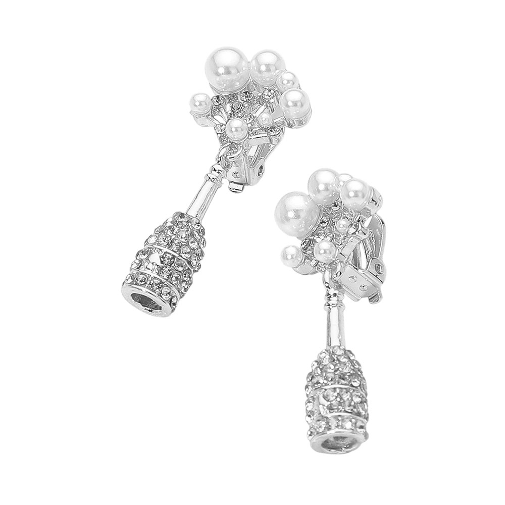 Details • Size : 0.7" X 1.6" • Clip On • Elevate your elegance with these pearl cluster champagne bottle drop clip-on earrings featuring a shimmering arrangement of pearls and crystals. Designed for effortless sophistication, they bring a graceful sparkle to evening wear or special occasions—comfortable clip-on style ensures all-day wear without piercings. • Lead and Nickel Compliant