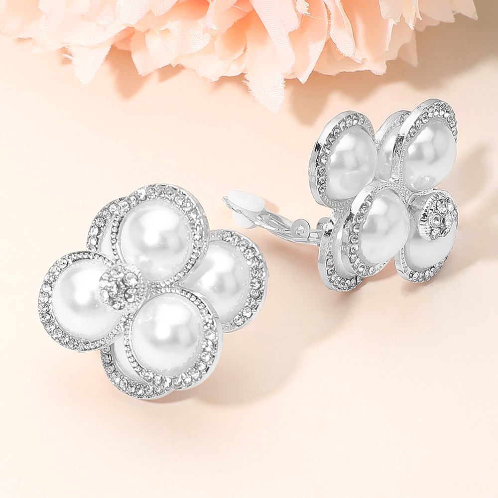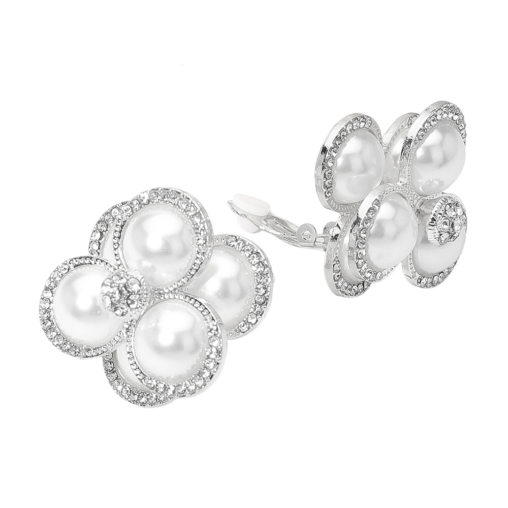 • Chic pearl cluster flower clip-on earrings designed with glossy petals and sparkling crystal accents. A stylish and comfortable accessory that brings an elegant touch to any outfit, perfect for both everyday wear and special occasions without the need for pierced ears.