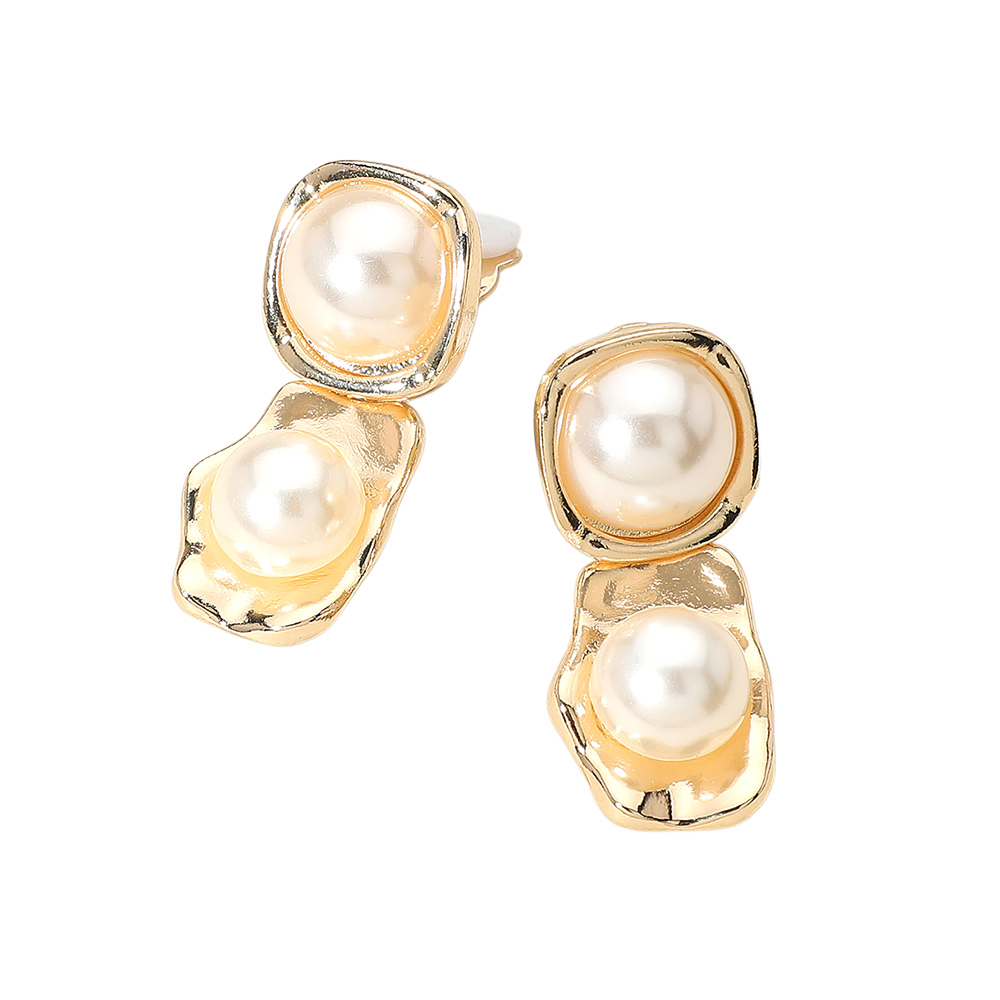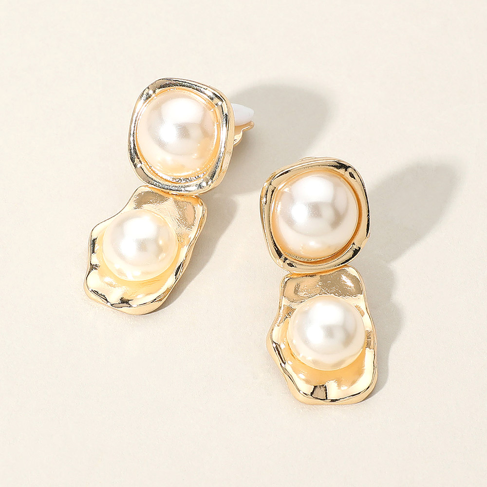 Pearl Plate Link Clip On Earrings
