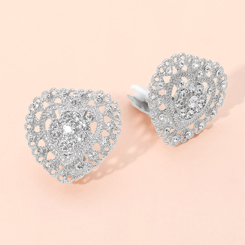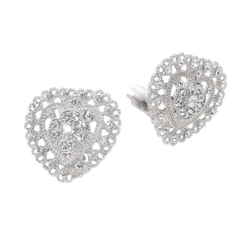 Details • Size : 1.2" X 1.2" • Clip On • Elevate everyday and special occasion looks with these heart shape clip earrings featuring intricate openwork and sparkling accent details. Designed for comfortable wear without piercings, they offer timeless charm and eye-catching shine. A perfect boutique accessory for romantic styles, gifts, and elegant statement looks. • Lead and Nickel Compliant