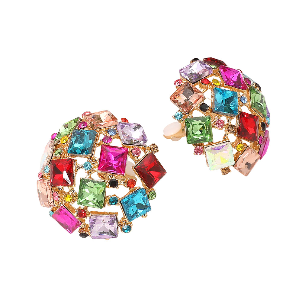 Square Stone Cluster Embellished Dome Evening Clip On Earrings Square Stone Cluster Embellished Dome Evening Clip On Earrings Square Stone Cluster Embellished Dome Evening Clip On Earrings
