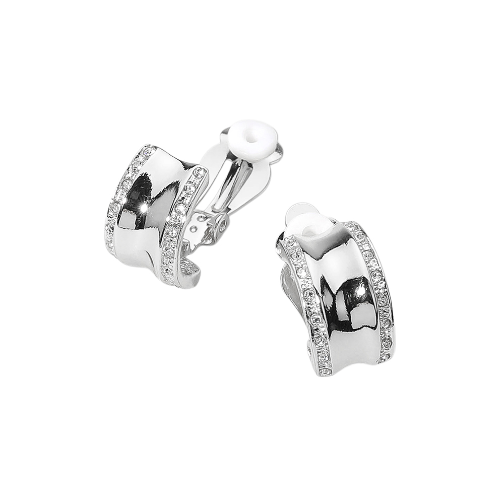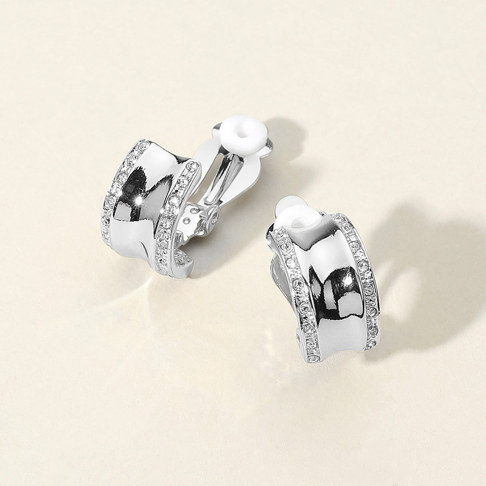 Stone Paved Rim Metal Half Hoop Clip On Earrings