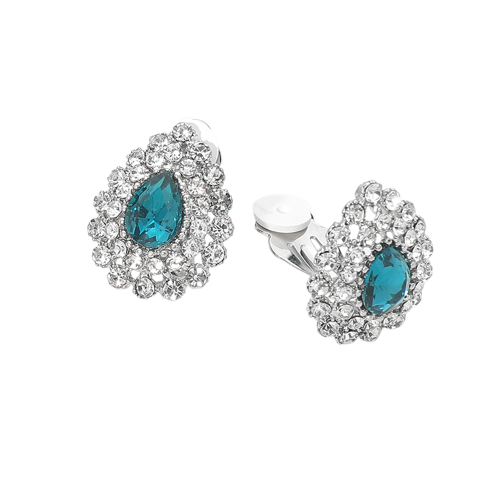 Teardrop Cluster Evening Clip On Earrings