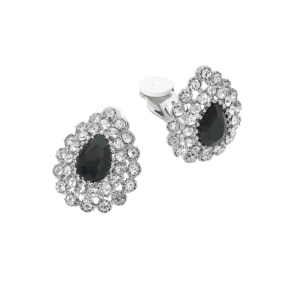 • Crystal teardrop cluster clip earrings featuring a classic halo-inspired design that adds instant elegance to any look. Designed for comfortable, secure wear without piercings, perfect for special occasions or elevated everyday styling. Ideal for boutiques seeking timeless, dressy statement earrings with refined appeal.