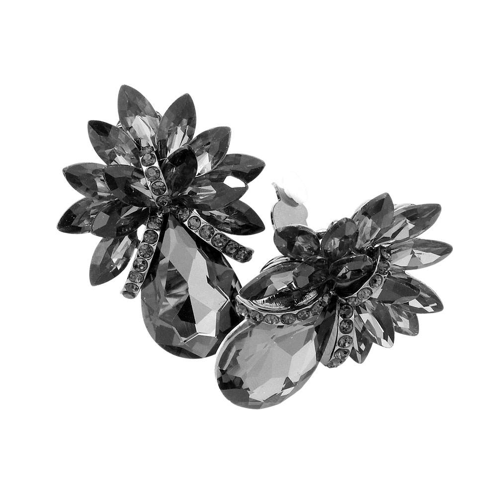 Teardrop Stone Accented Clip on Evening Earrings Teardrop Stone Accented Clip on Evening Earrings