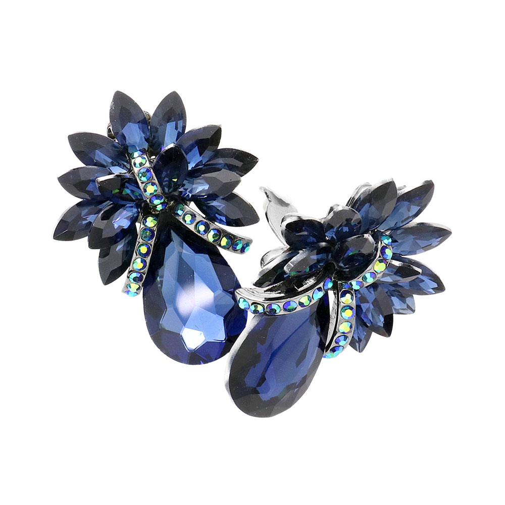 Flower Teardrop Stone Cluster Dangle Evening Earrings