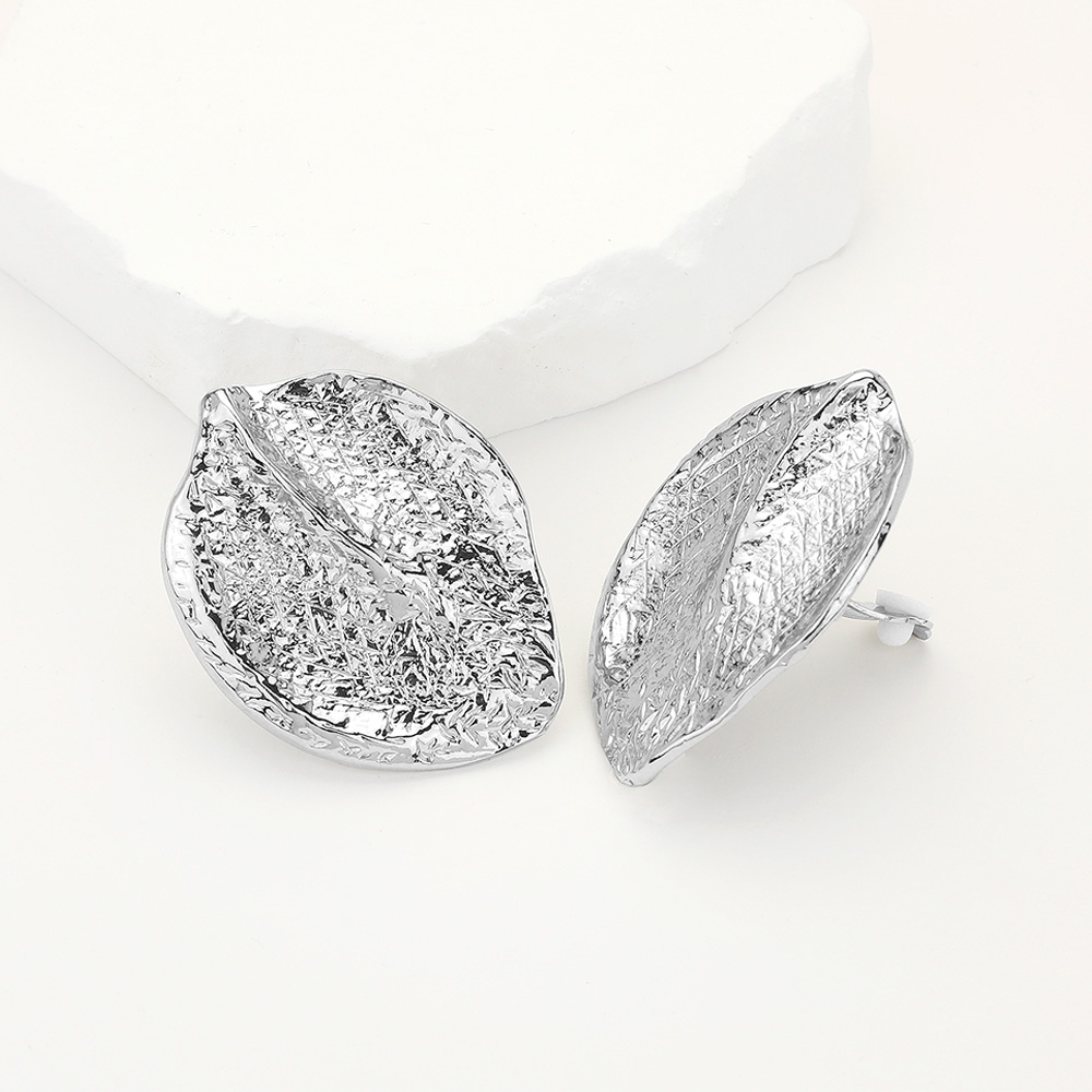 Textured Metal Leaf Clip On Earrings