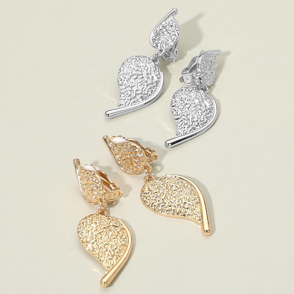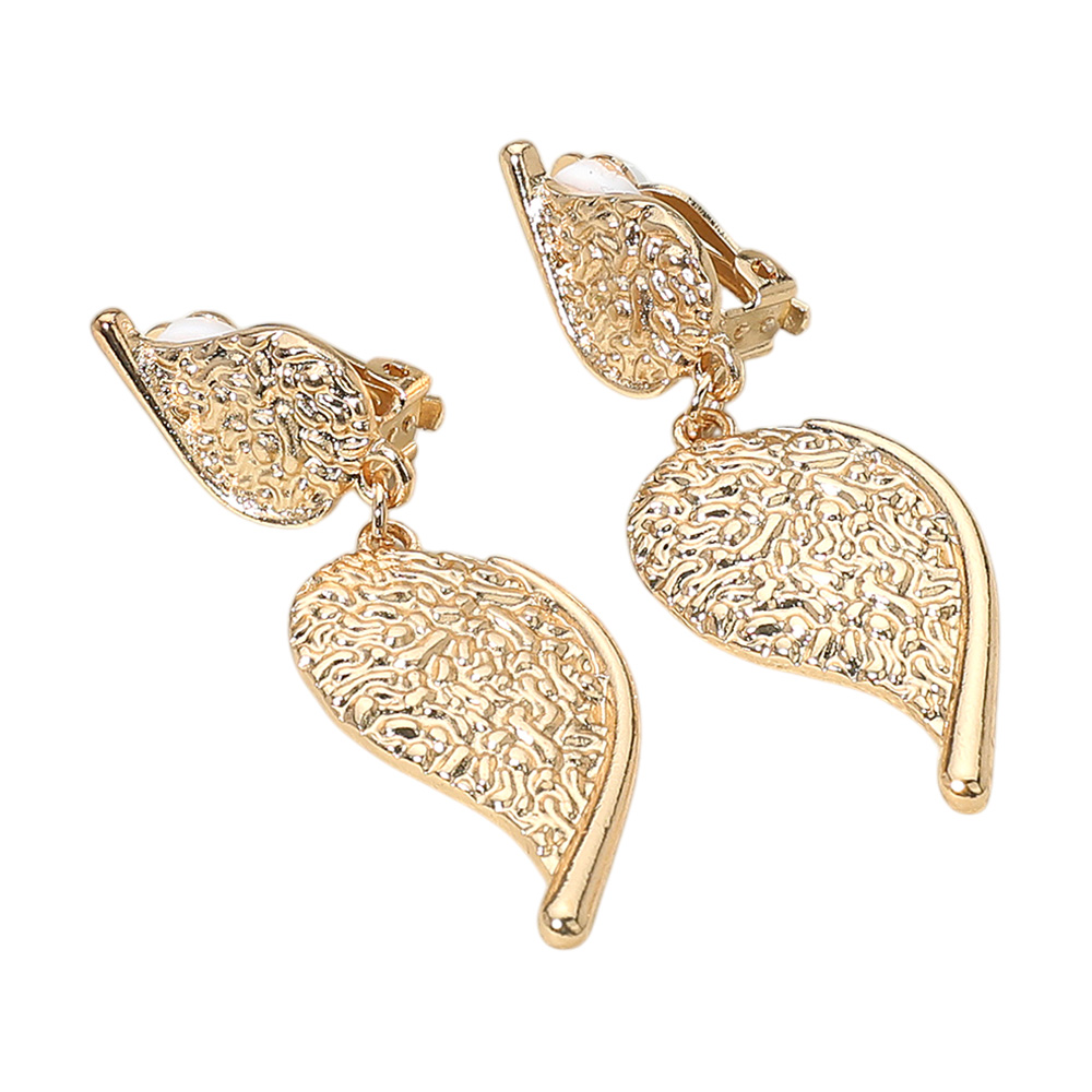 Details • Size : 0.7" X 2.25" • Clip On • These textured leaf clip-on earrings showcase a refined drop design with intricate detailing, perfect for adding sophistication to any outfit. Comfortable and versatile, they complement both casual looks and elegant ensembles, making them a timeless accessory choice. • Lead and Nickel Compliant