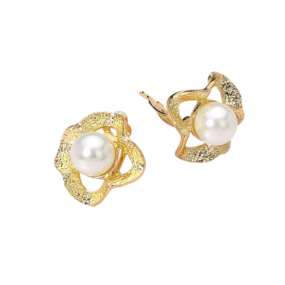 • Add timeless elegance to your look with these textured wave pearl clip-on earrings. Designed with an artistic open-frame silhouette and lustrous centerpiece, they bring sophistication and comfort to any ensemble. Perfect for both everyday wear and special occasions.