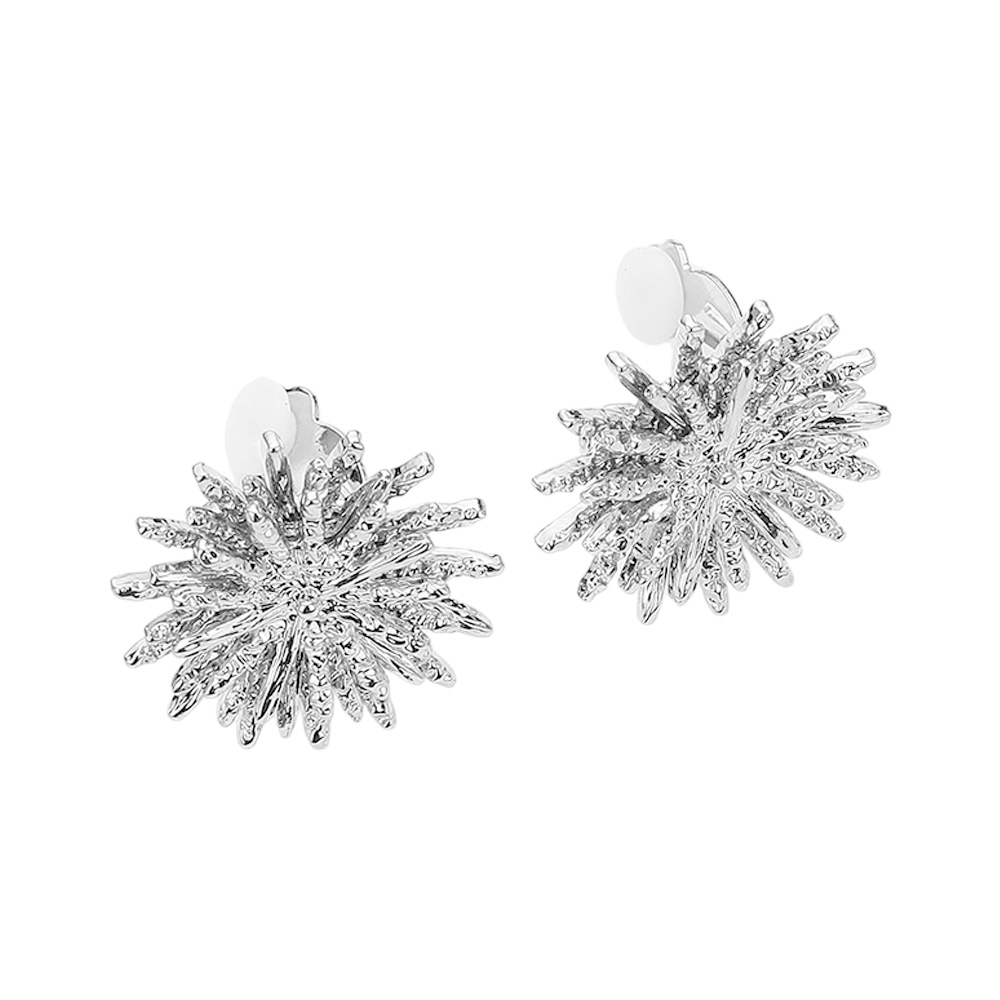 Details • Size : 0.9" X 0.9" • Clip On • Add dazzling brilliance to your style with these radiant starburst clip-on earrings. Designed with intricate detailing for a bold yet elegant look, they capture light beautifully from every angle. Perfect for special occasions or adding sparkle to everyday wear—no piercings required. • Lead and Nickel Compliant